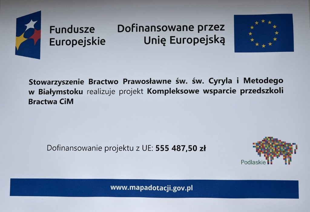 Cel Projektu: Podniesienie poziomu edukacji przedszkolnej placówek prowadzonych przez Stowarzyszenie Bractwo Prawosławne im. św. św. Cyryla i Metodego poprzez zakup pomocy dydaktycznych oraz objęcie wsparciem 140 dzieci uczęszczających do placówek i 20 nauczycieli wychowania przedszkolnego do końca lipca 2027 roku.