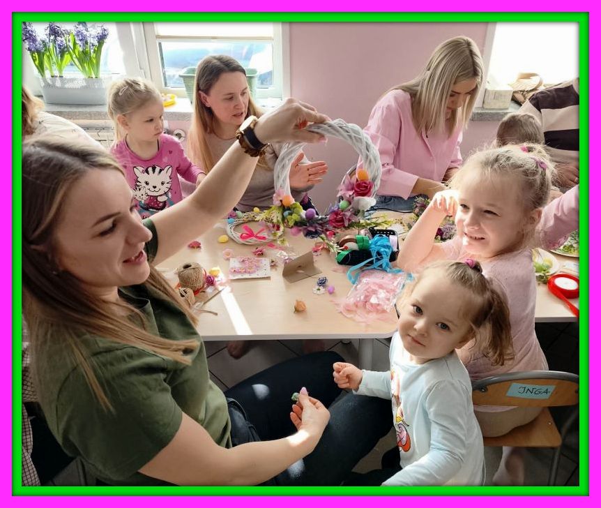 Dziś w najmłodszej grupie odbyły się Warsztaty Wielkanocne. Dzieci wraz z rodzicami oraz rodzeństwem pod fachowym okiem pań z przedszkola robiły piękne świąteczne wianuszki. Warsztaty integrują dzieci i rodziców oraz panie 🙂