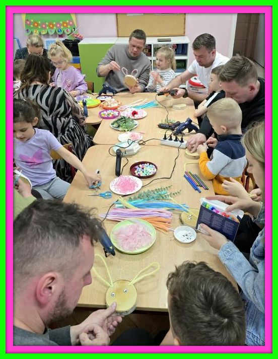 Dziś w godzinach popołudniowych odbyły się Warsztaty Wielkanocne w grupie pięciolatków. Przedszkolaki wraz z rodzicami, rodzeństwem i opiekunami tworzyły cudeńka. Na Wielkanoc ozdoby jak znalazł 🙂